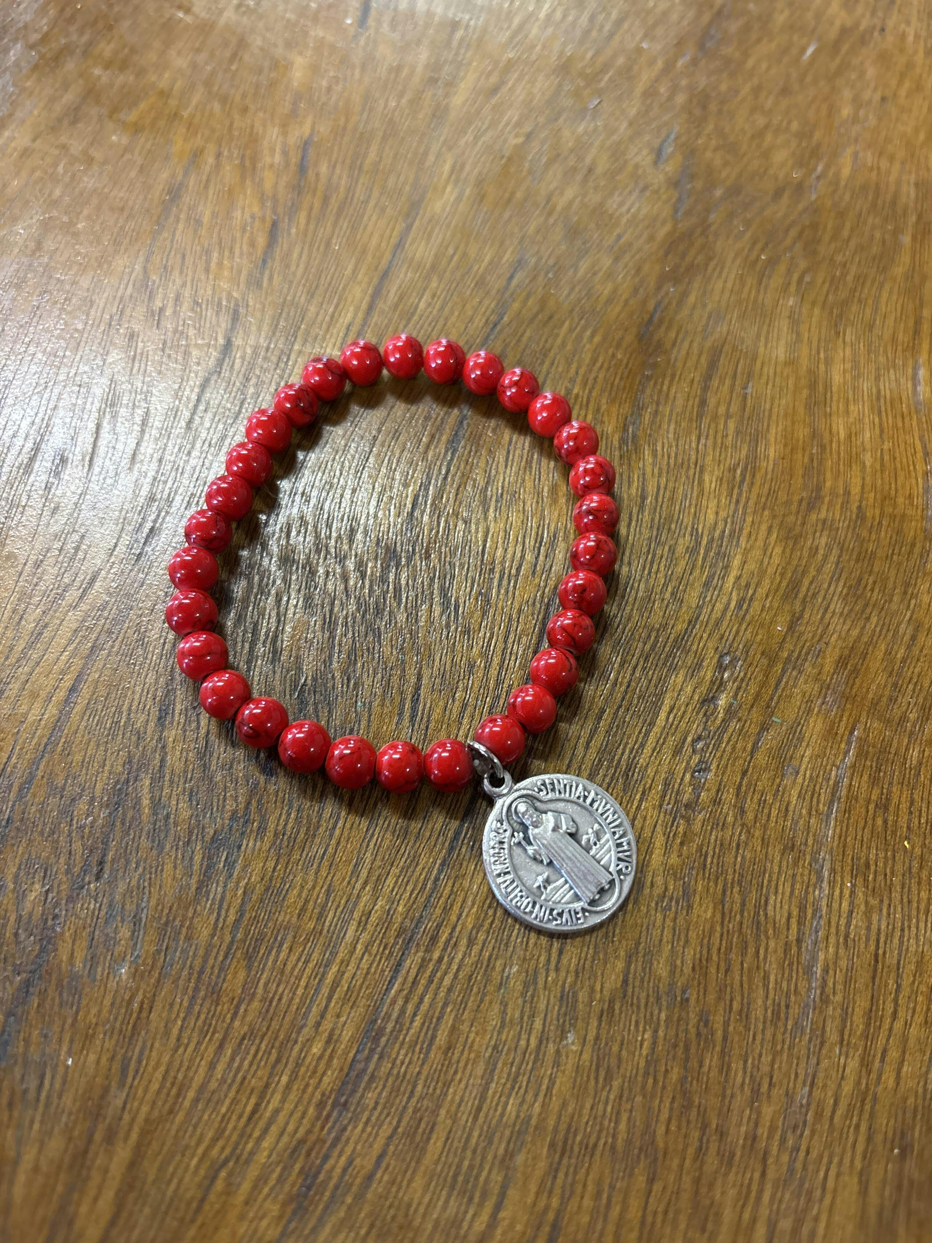Handcrafted from 6mm Red Agate beads, this bracelet features a mini 10mm St. Benedict medal, one of the most powerful symbols of spiritual defence in Catholic tradition. It’s designed to be worn as a quiet shield, a piece that stays close, infused with purpose.