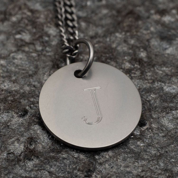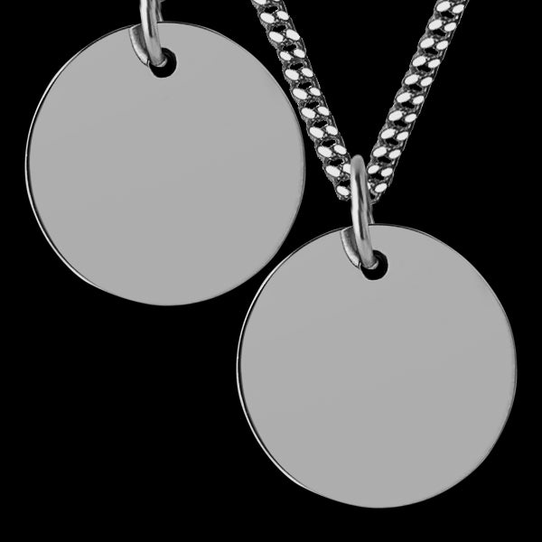 A simple and classic design. You can personalise both sides of this pendant with an initial, a word or short phrase of your choice.